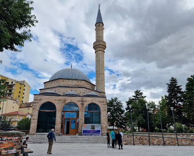 De oude moskee van rond 1500 heeft het communistisch bewind wel overleefd. Ook vrouwen mogen naar binnen, natuurlijk zonder schoenen. Er heerst een bijzondere sfeer, de ramen zijn bijzonder.  |